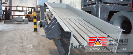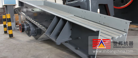 振動(dong)(dong)給(gei)(gei)料(liao)機是(shi)由(you)(you)給(gei)(gei)料(liao)槽體、激(ji)振器、彈簧支座、傳動(dong)(dong)裝置等組成(cheng)。槽體振動(dong)(dong)給(gei)(gei)料(liao)的(de)(de)振動(dong)(dong)源是(shi)激(ji)振器,激(ji)振器是(shi)由(you)(you)兩(liang)根偏心(xin)軸(zhou)(主(zhu)(zhu)(zhu)、被動(dong)(dong))和(he)齒輪副(fu)組成(cheng),由(you)(you)電動(dong)(dong)機通過三角帶驅動(dong)(dong)主(zhu)(zhu)(zhu)動(dong)(dong)軸(zhou),再由(you)(you)主(zhu)(zhu)(zhu)動(dong)(dong)軸(zhou)上齒輪嚙合被動(dong)(dong)軸(zhou)轉(zhuan)動(dong)(dong),主(zhu)(zhu)(zhu)、被動(dong)(dong)軸(zhou)同時(shi)反向(xiang)旋轉(zhuan),使(shi)槽體振動(dong)(dong),使(shi)物料(liao)連續不斷流動(dong)(dong),達到輸(shu)送物料(liao)的(de)(de)目的(de)(de)。